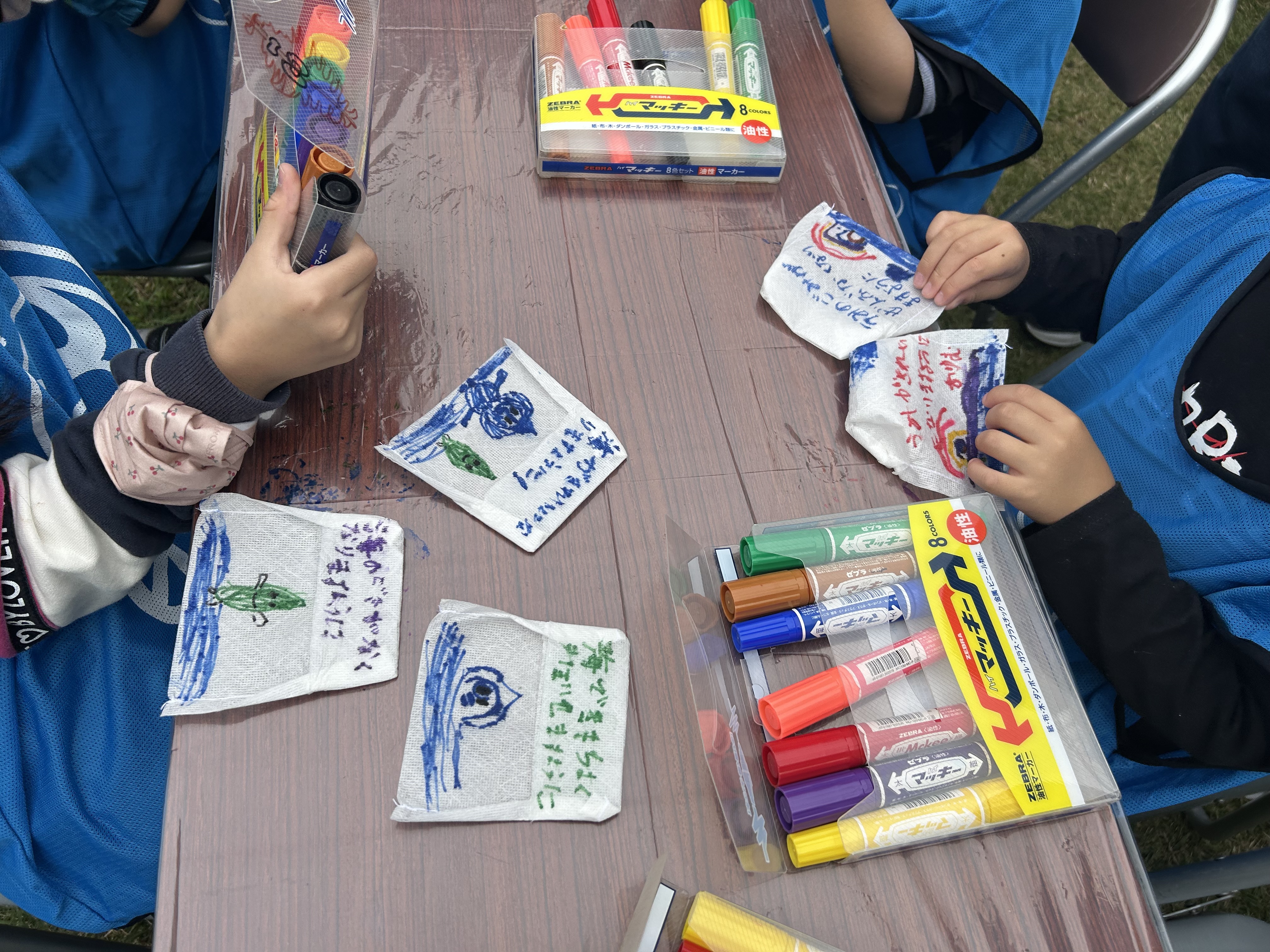 <タネを入れる生分解性不織布の袋に、子供たちが絵やメッセージを描いてくれました。>
