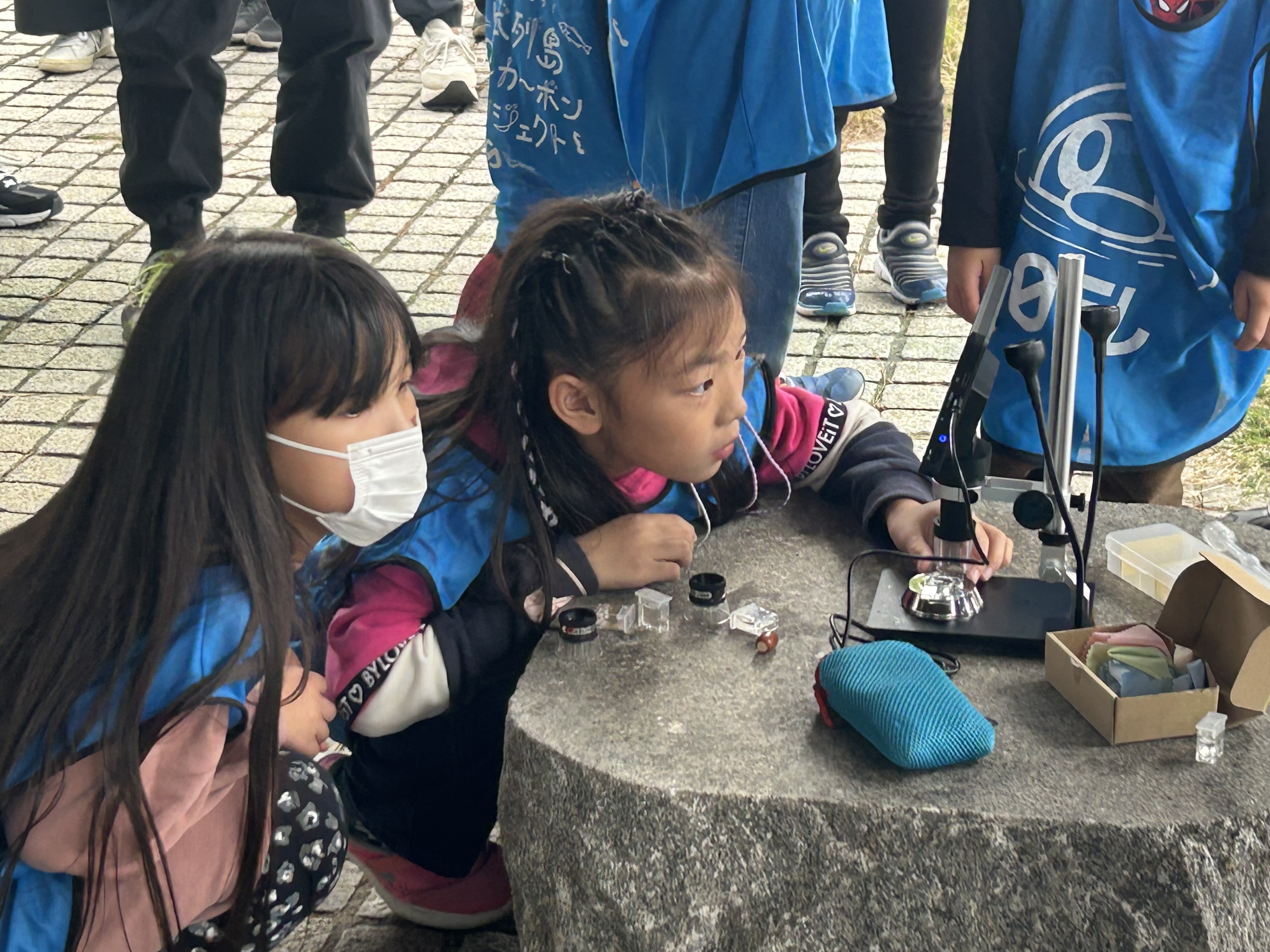 <子供たちは顕微鏡を使ってのプランクトン観察に興味津々でした。>