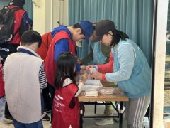 <不織布の袋に現地で採取した砂を入れます。順番待ちができていますね。>