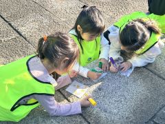 <子ども達は種を入れる前に、生分解性の不織布に絵を描きました。>
