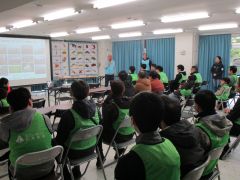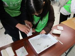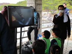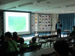 <活動の始めに座学を行いました。> <海辺つくり研究会から「東京湾アマモ場再生活動」について学んでから活動スタートです。> <子どもたちがタネを入れる不織布のパックに思いを込めて絵を描いてくれました。> <そのパックにタネを一粒づつ入れ、砂と泥を入れていきます。> <完成したパックをダイバーさんが海底に植えてくれる様子をモニターで見守りました。> <閉会式では、子どもたちに感謝状が贈られました。>